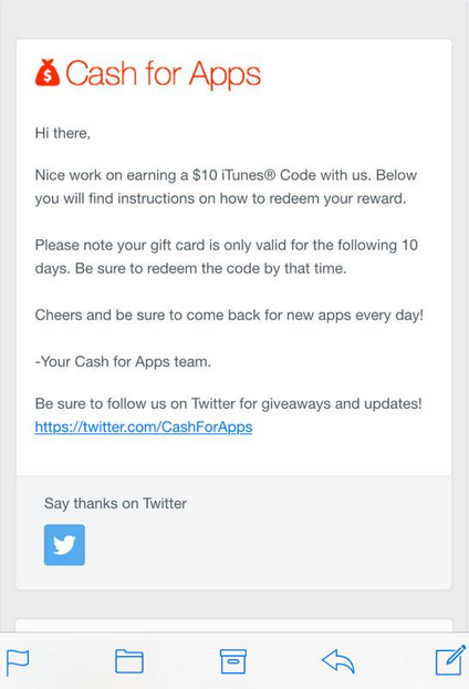 - Pertama, ada aplikasi bernama Cash yang sudah tersedia di Android ataupun iOS yang mampu membantu Anda untuk mendapatkan sejumlah poin dan nantinya bisa mendapatkan sebuah iTunes gift card sebesar $10 atau sekitar Rp 134 ribuan. Lumayan kan?
