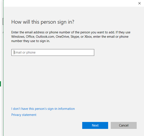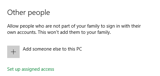 - Di bagian Other people, pilih > Add someone else to this PC.