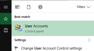 - Ketikkan User di search bar atau Cortana. Jika sudah pilih > User Accounts.
