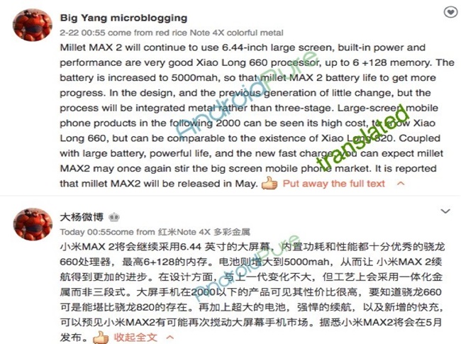 Untuk versi Android yang dipakai, kabarnya juga Xiaomi Mi Max 2 akan berjalan di atas MIUI berbasis Android 7.0 Nougat. Tentu hal ini membuat Xiaomi Mi Max 2 menjadi salah satu smartphone mid-end yang paling ditunggu karena selain mengusung layar besar, juga mengusung spesifikasi mumpuni dan juga baterai berukuran jumbo.