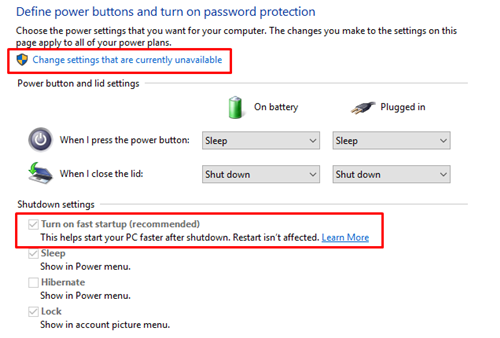 - Langkah selanjutnya adalah tekan pengaturan Change settings that are currently unavailable, kemudian aktifkan Turn on fast startup. Jika sudah, tekan tombol Save changes.