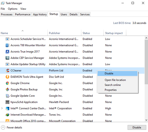 - Selanjutnya, masuk ke bagian Startup. Di sana terdapat banyak aplikasi yang akan aktif ketika PC atau laptop menyala yang menyebabkan booting lebih lambat. Cara mematikannya, klik kanan pada aplikasi, kemudian tekan Disable.