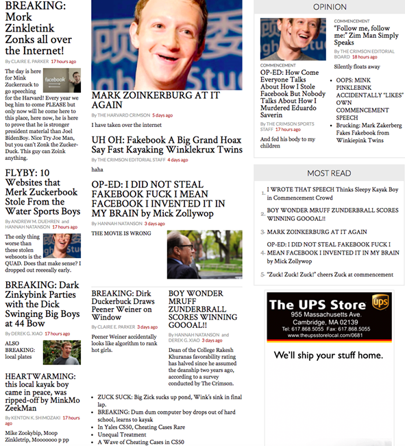 Pertanyaannya sekarang adalah apakah Mark Zuckerberg sempat melihat headline serta wajahnya yang terlihat aneh tersebut di situs kampusnya sendiri? (FHP/MS)
