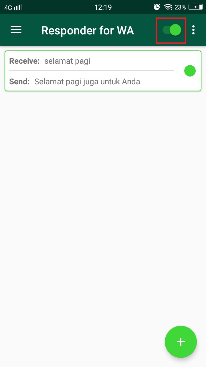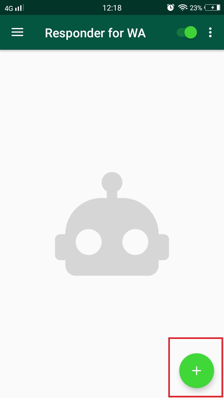 Setelah memberi akses, maka Anda akan masuk ke tampilan utama. Untuk memulai memberikan perintah balasan otomatis, Anda bisa mengetuk tanda ‘+’ di bagian kanan bawah aplikasi.