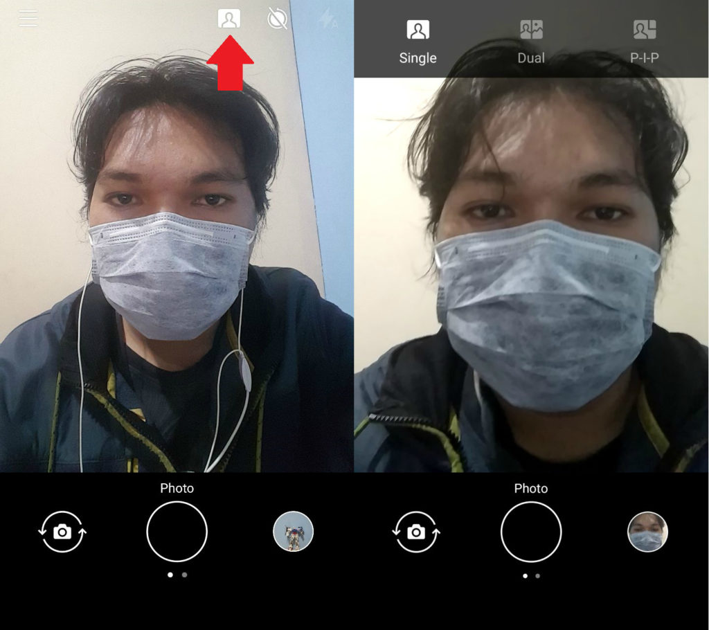 Nah, untuk mengaktifkan fitur Bothie, Anda hanya tinggal mengklik ikon siluet manusia di bagian tengah atas layar. Setelah diklik, akan muncul tiga mode, yakni Single, Dual, serta P-I-P.