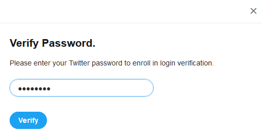 • Masukkan password Anda terlebih dahulu dan tekan tombol Verify. Untuk melakukan verifikasi, tekan tombol Send Code, dan otomatis Twitter akan mengirimkan kode verifikasi ke nomor yang telah terdaftar sebelumnya.