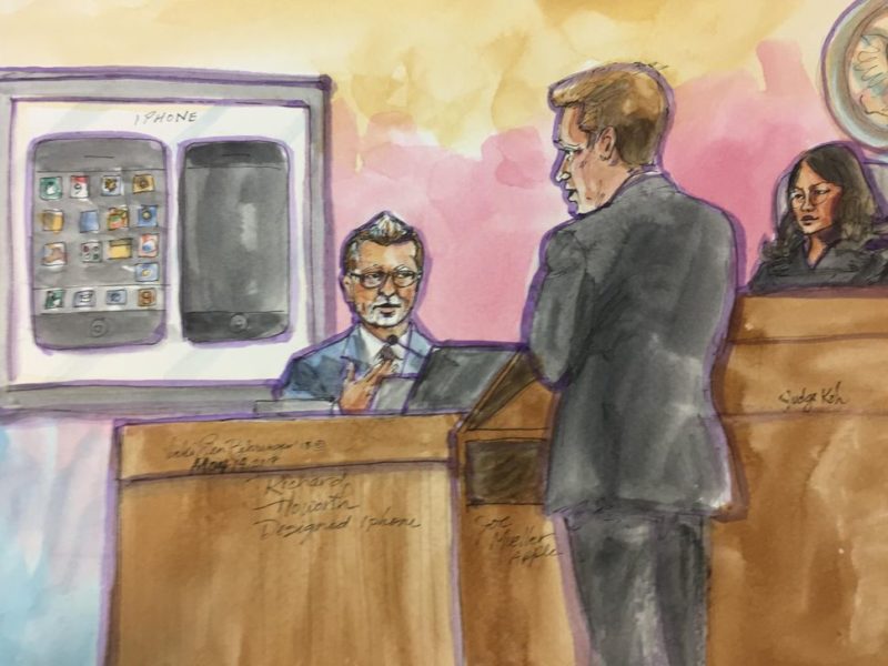 Demi menunjukkan pentingnya karya desainnya, persidangan menunjukkan aspek dari proses desain Apple yang biasanya rahasia. Disini, kata Howarth, Apple menolak ratusan prototipe iPhone sebelum merilis model pertama pada 2007. Ada yang memiliki bezel oktagonal, ada yang hanya dibulatkan pada sisi kiri dan kanan dan ada yang memiliki bagian depan kelabu.
