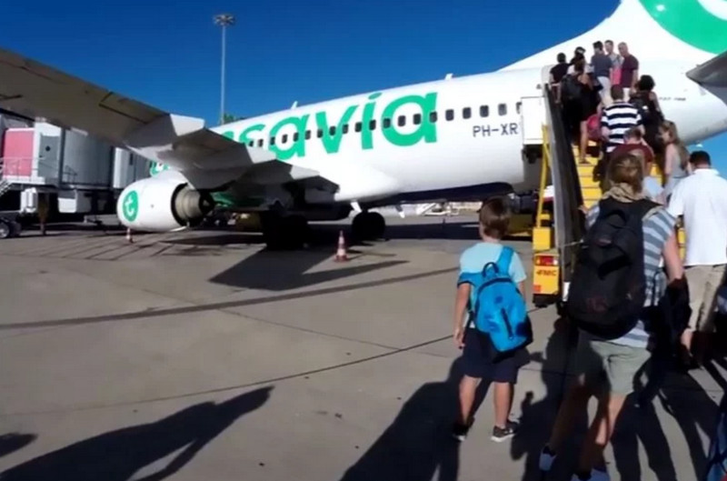 Pesawat Transavia Boeing 737 tersebut sedamg melakukan perjalanan dari Belanda ke Gran Canaria. Pesawat ini terpaksa terbang memutar dan mendarat di Faro, Portugal.