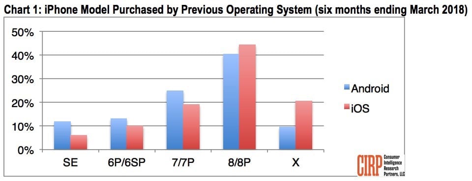 Ponsel iPhone 8 maupun iPhone 8 Plus menjadi yang paling banyak dibeli oleh eks pengguna Android, yakni sebanyak 40 persen. Consumer Intelligence Research Partners menyebut bahwa mantan pengguna Android lebih suka membeli iPhone 8 Plus ketimbang iPhone 8.