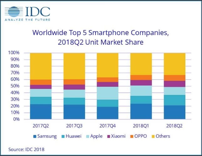 | Source: IDC Worldwide Quarterly Mobile Phone Tracker, July 31, 2018 | |||||
