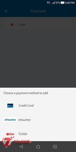 • Ada tiga pilihan metode pembayaran. Pilih TCash sebagai metode pembayaran yang baru.