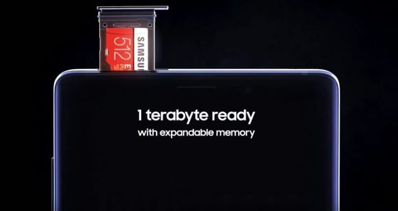 Samsung Galaxy Note 9 punya dua varian yang dibedakan dari memori internalnya. Yang paling besar adalah 512GB, dan juga tetap mendukung slot memori eksternal dengan kapasitas maksimal 512GB.