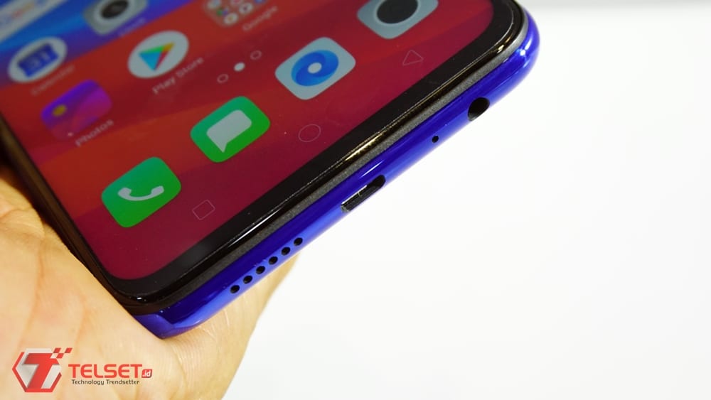 Di bagian depan misalnya, Oppo F9 mengadopsi desain notch bernama “Waterdrop Notch”. Sesuai namanya, notch atau poni tersebut berbentuk seperti tetesan air dan berukuran kecil.