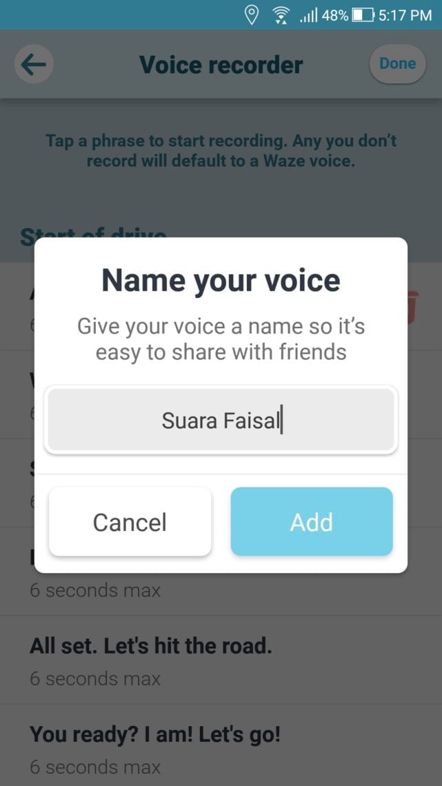 - Jika sudah, tekan Done dan berikan nama untuk suara navigasi Anda, lalu tekan Add.