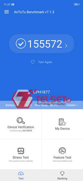 Lantas bagaimana kemampuannya? Untuk mengetahuinya, kami menggunakan aplikasi AnTuTu Benchmark versi 7, agar mengetahui performa smartphone dalam angka, dan dapat membandingkannya dengan smartphone lain di kelasnya.