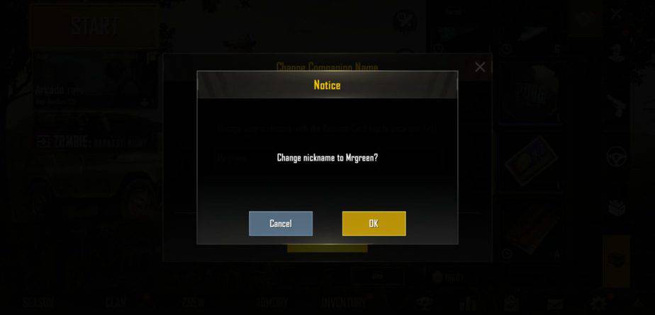- Nah, biasanya terdapat item bernama Rename Card. Item ini biasanya diberikan PUBG secara gratis, tapi jika Anda tidak memilikinya, Anda dapat membelinya di Shop seharga 180 UC.