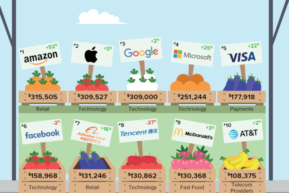 Perusahaan-perusahaan teknologi lain di dunia yang masuk daftar merek bernilai adalah Verizon, Xfinity, T-Mobile, China Mobile, Intel, Samsung, YouTube, Instagram, Adobe, Huawei , Vodafone, LinkedIn, Xiaomi, serta Hewlett Packard.