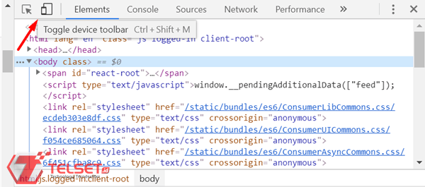 - Sekarang bagian paling krusialnya nih. Di samping tab Elements, tekan ikon mobile atau tombol Toggle Device Toolbar.