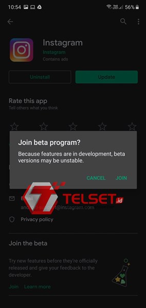 • Di sini proses yang paling krusial. Anda harus masuk ke program Beta dari Instagram, dengan scroll ke bawah, dan tekan tombol Join di bagian Join the beta.