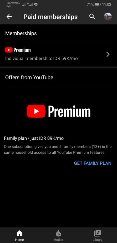 - Lantas, bagaimana untuk mendapatkan 1 bulan gratis YouTube Premium? Anda masuk ke halaman Profile, dan tekan tombol Paid Memberships.