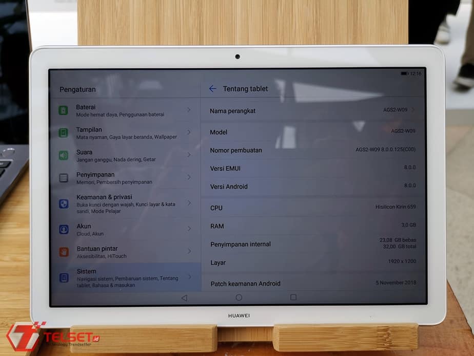 Terakhir adalah Huawei MediaPad T5. Tablet kelas menengah ini ditenagai oleh spesifikasi yang cukup, berkat prosesor Kirin 659, RAM 3GB, memori penyimpanan 32GB, dan baterai berkapasitas 5,100 mAh.