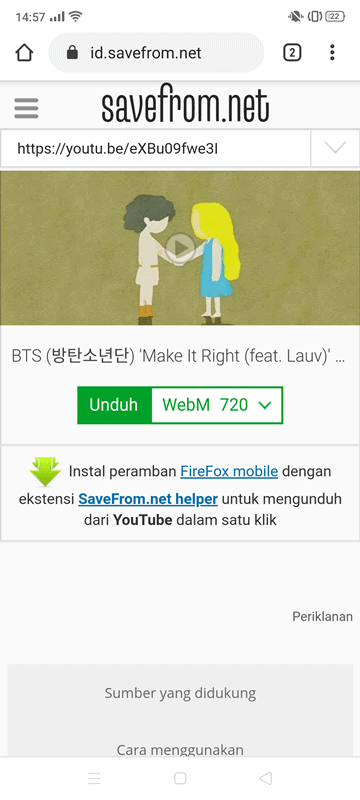 Pilih format yang diinginkan – WebM, MP4, dan lainnya. Unduh.