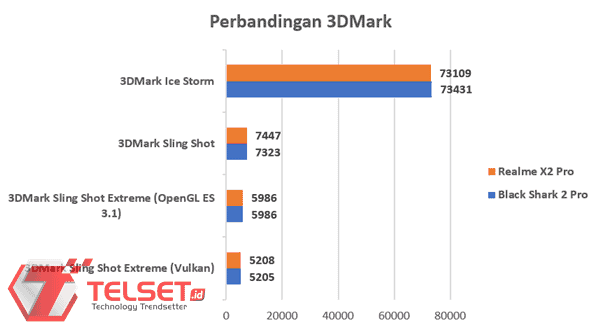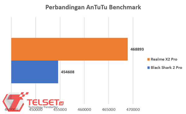 Berdasarkan pengujian kami di AnTuTu Benchmark, ponsel gaming Black Shark 2 Pro sukses mencatatkan skor 454.608 poin. Sedangkan untuk 3DMark, smartphone ini masing-masing mencatatkan skor 73.431 poin untuk Ice Storm, Max untuk Ice Storm Extreme, 7.323 poin untuk Sling Shot, dan 5.986 poin untuk Sling Shot Extreme OpenGL ES 3.1 serta 5.205 poin untuk Sling Shot Extreme Vulkan.