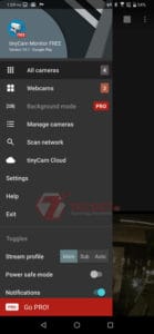 - Setelah terinstal buka aplikasi tersebut, dan pilih menu tumpuk yang ada di sudut kiri atas lalu pilih “Manage Camera.”