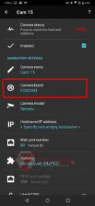 - Setelah masuk ke menu, pada opsi “Camera Brand” cari pilihan “IP Webcam for Android”