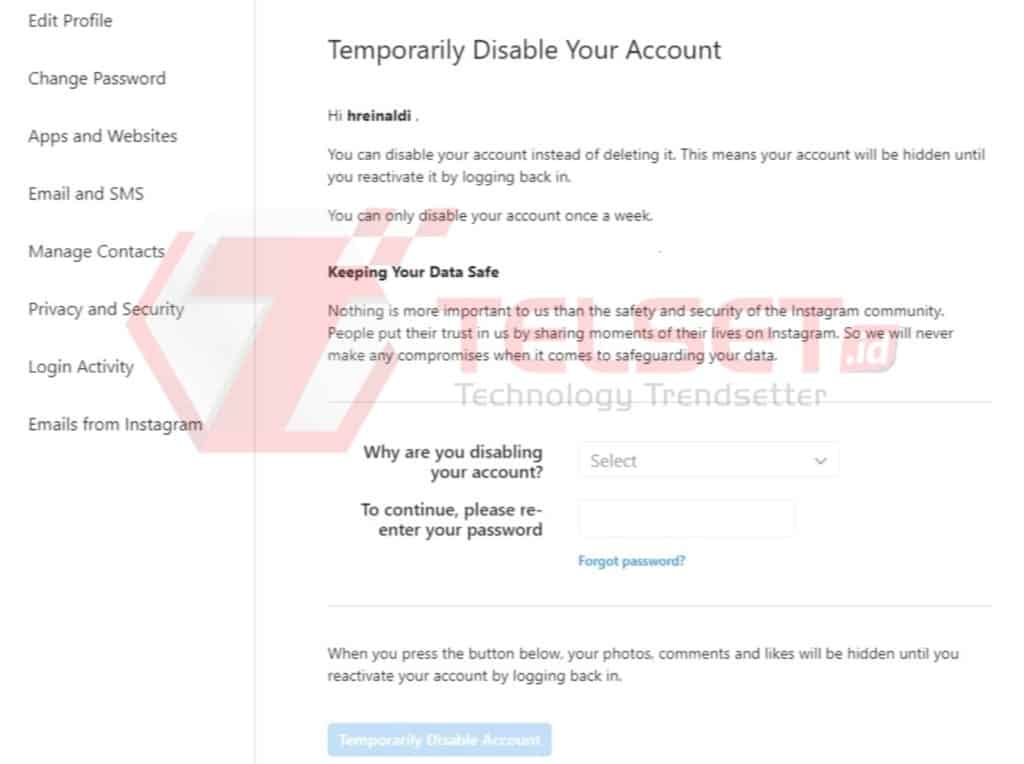 Dengan menonaktifkan akun Instagram, tidak hanya profil Anda yang akan disembunyikan, tetapi juga foto, komen dan like yang Anda berikan. Tentunya semua bisa dikembalikan secara normal setelah Anda mengaktifkan kembali akun tersebut.