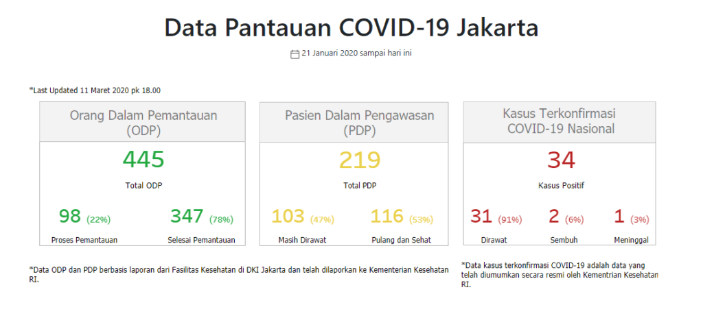 Melalui situs pantau corona Jakarta, Anda bisa memantau berapa banyak Orang Dalam Pemantauan (ODP) dan Pasien Dalam Pengawasan (PDP) di wilayah DKI Jakarta.