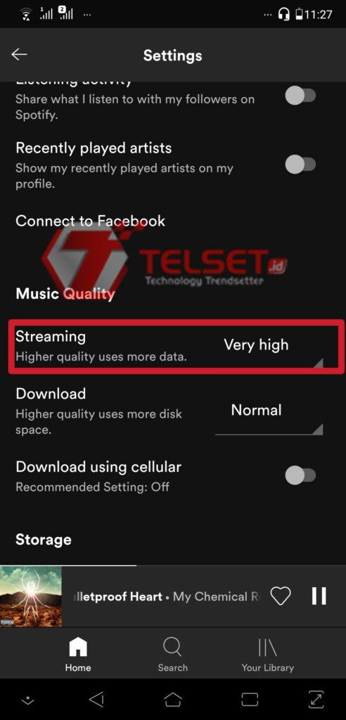 - Di sini, Anda bisa memilih kualitas lagu yang disajikan saat streaming.