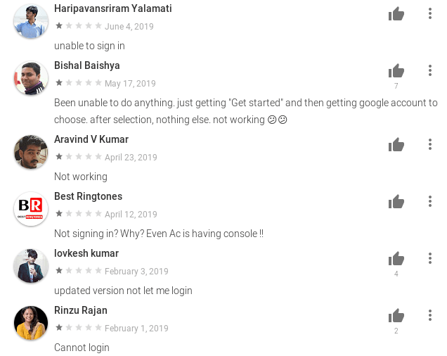Menurut ulasan pengguna, aplikasi itu sudah mengalami masalah sejak Oktober. Banyak orang tidak dapat masuk dengan akun Google, dan laporan terakhir paling lambat bulan lalu. Menurut Play Store, Blog Compass mencapai antara 10.000 hingga 50.000 pemasangan.