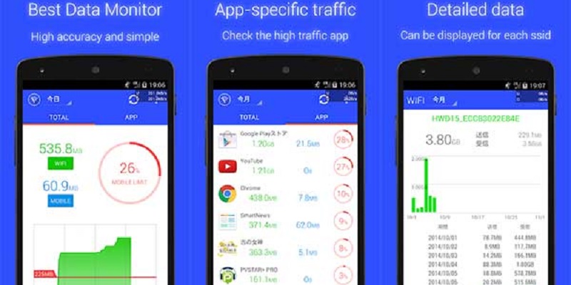 Para pengguna akan disajikan data penggunaan kuota internet harian, mingguan, hingga bulanan. Selain itu, aplikasi ini juga akan menginformasikan peringkat aplikasi paling banyak menghabiskan kuota.
