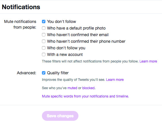 Untuk mengatasi hal ini, pihak Twitter menggulirkan pembaharuan bagi para penggunanya. Kali ini, salah satu media sosial terbesar tersebut memberikan opsi untuk mematikan notifikasi dari pengguna yang tidak mengikuti akun mereka, sehingga pemilik akun akan lebih sedikit mendapatkan ‘spam’.