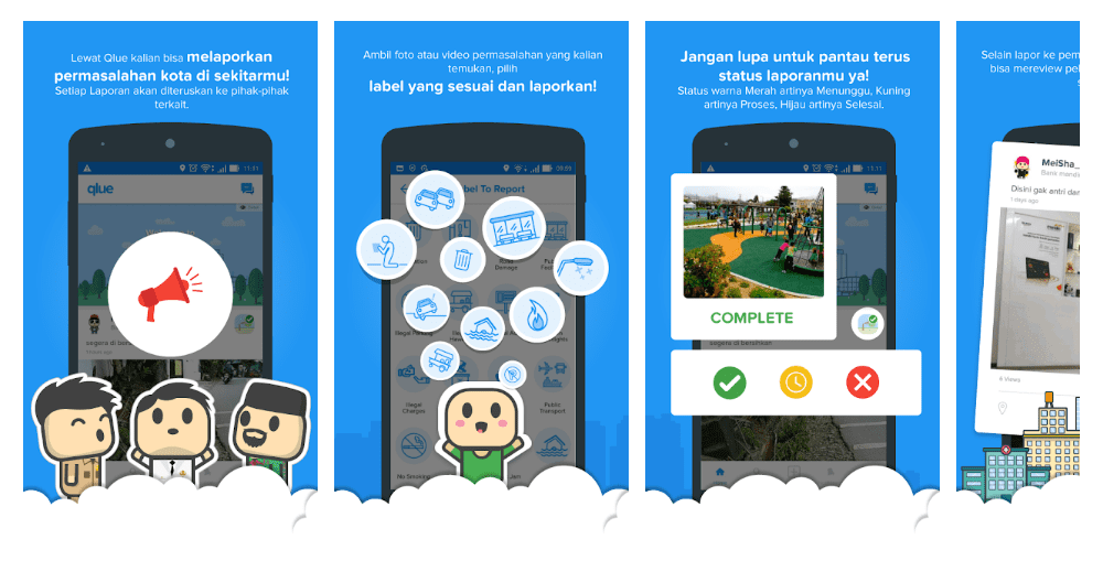 Lewat aplikasi Qlue ini, masyarakat dapat melaporkan berbagai masalah lingkungan dan sosial, mulai dari sampah, lampu & rambu lalu lintas yang rusak, kemacetan, pelanggaran lalu lintas, parkir liar, tunawisma/pengemis, fasilitas anak, orang hilang, pedagang kaki lima liar, pelanggaran bangunan, iklan liar, permintaan fogging DBD, masalah kesehatan hingga laporan kebakaran.