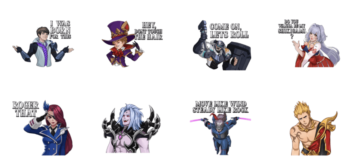 Selain memiliki karakteristik yang berbeda-beda, delapan hero yang digunakan oleh para gamers saat memainkan Mobile Legends di perangkat mereka ini juga mempunyai ekspresi yang tidak sama. Seperti stiker Gusion yang memiliki ekspresi arogan atau stiker Martis dengan ekspresi tertawanya yang khas.