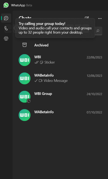 Secara spesifik, notifikasi tersebut menyebutkan kemampuan atau fitur untuk melakukan video ke kontak dan grup yang dimiliki, hingga sebanyak 32 orang, langsung dari aplikasi WhatsApp di Windows.