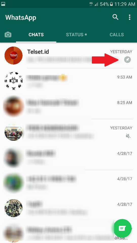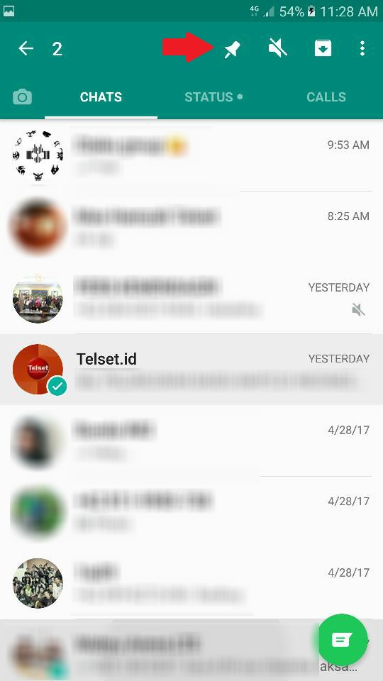 Setelah itu, Anda tinggal memilih grup mana saja yang ingin diletakkan diatas dan menekan panjang pada grup tersebut. Setelah itu, pilihan berbentuk pin akan muncul dibagian atas. Klik pin tersbut.