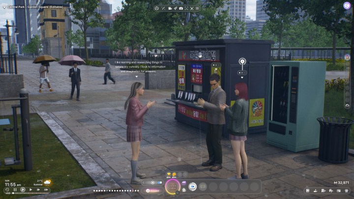 Inzoi menawarkan sistem interaksi yang lebih kaya dibandingkan The Sims. Pemain bisa memilih berbagai opsi percakapan, mulai dari diskusi biasa, pertanyaan filosofis, hingga interaksi unik seperti “mengklaim bahwa dunia ini tidak nyata”.