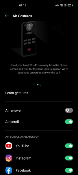 Fitur Smart Air Control sangat bermanfaat ketika Anda harus mengoperasikan smartphone dengan tangan yang kotor atau berkeringat ketika sedang berolahraga, misalnya ingin memutar YouTube, melihat Instagram sambil beristirahat, dan lainnya.