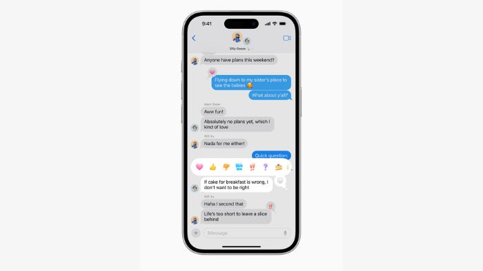 Tidak hanya aplikasi Foto, aplikasi Pesan juga mendapatkan peningkatan besar dengan penambahan opsi pemformatan teks seperti tebal, miring, garis bawah, dan strikethrough. Selain itu, pengguna kini dapat mengirim pesan melalui satelit ketika tidak ada jaringan seluler atau Wi-Fi, fitur yang sangat berguna untuk pengguna iPhone 14 dan yang lebih baru.