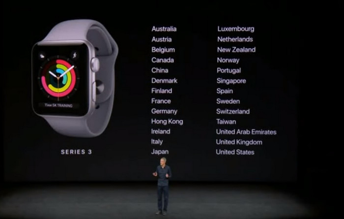 COO Apple, Jeff Williams mengatakan bahwa perangkat ini akan mendapatkan dukungan jaringan LTE. Apple Watch 3 tidak akan menggunakan kartu SIM biasa, melainkan akan menggunakan SIM elektronik yang memiliki nomor yang sama dan terhubung dengan iPhone pengguna.