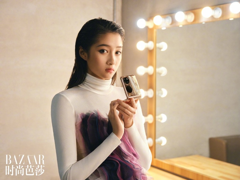 Digenggam oleh aktris dan penyanyi terkenal asal China, Guan Xiaotong, terlihat beberapa detail desain dari smartphone layar lipat pesaing Samsung Galaxy Z Flip3 itu.