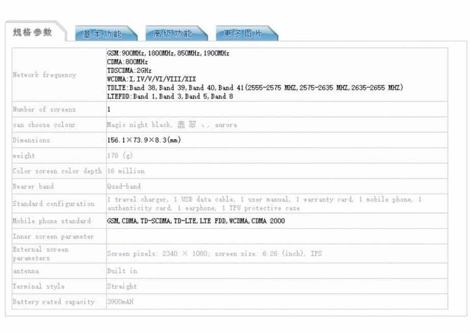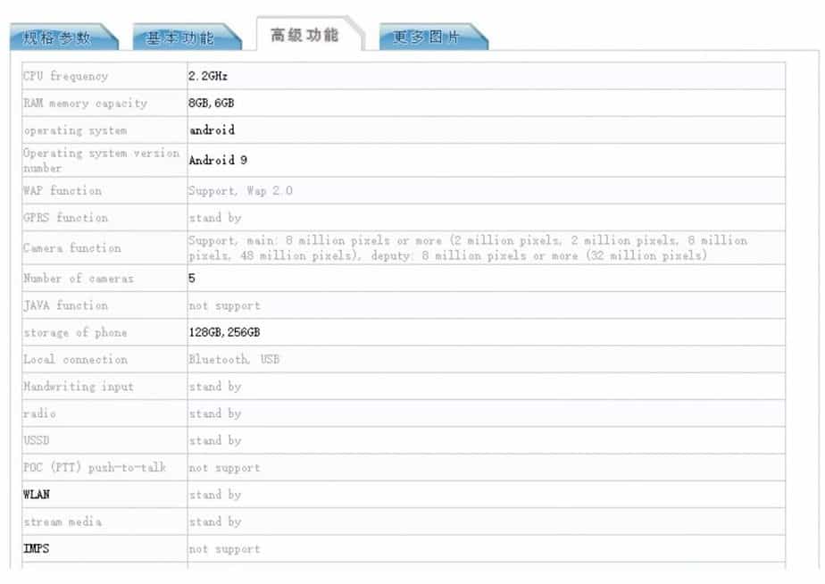 Dilansir GSMArena, smartphone yang menerima sertifikasi TENAA berpanel IPS 6,26 inci dengan resolusi 2.340×1.080 piksel. Kamera depannya berkemampuan 32MP. Menariknya, smartphone itu punya empat kamera belakang dengan sensor utama 48MP.