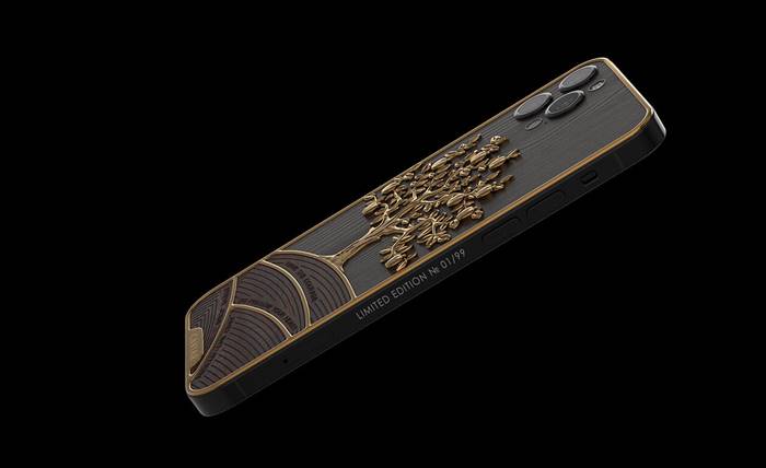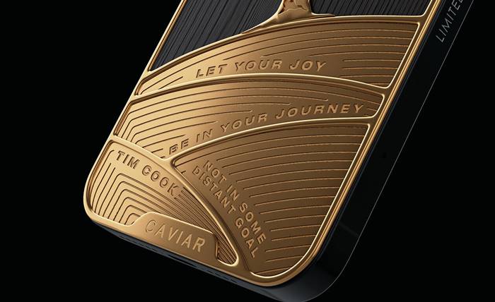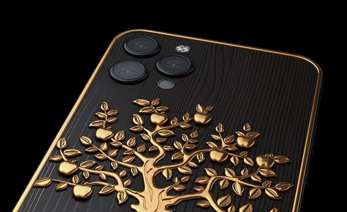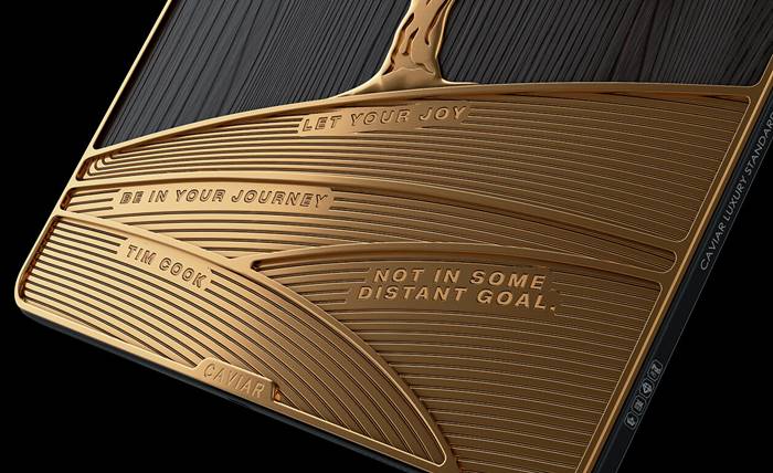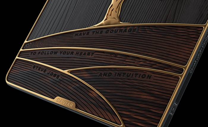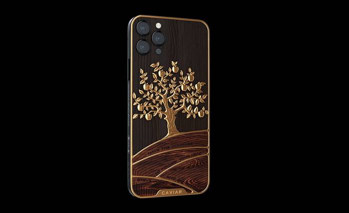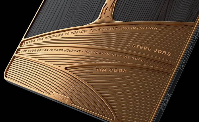 Caviar mengganti logo Apple di bagian belakang (secara harfiah) dengan pohon apel yang utuh. Pohon apel ini terbuat dari emas yang diletakkan di atas panel berbahan kayu apel yang telah digelapkan.