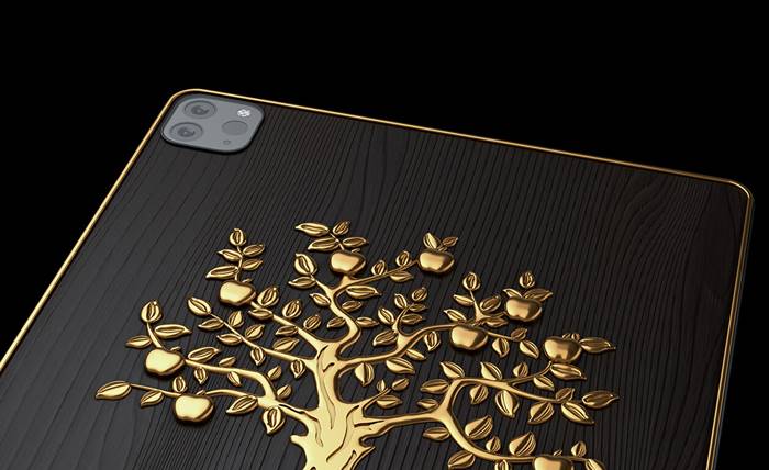 Seri mewah terakhir yang dipamerkan Caviar adalah Gold Apple untuk iPhone dan iPad juga. Berbeda dengan dua seri lainnya, Gold Apple lebih didominasi oleh panel kayu apel gelap dengan lapisan emas murni di bagian pohonnya.
