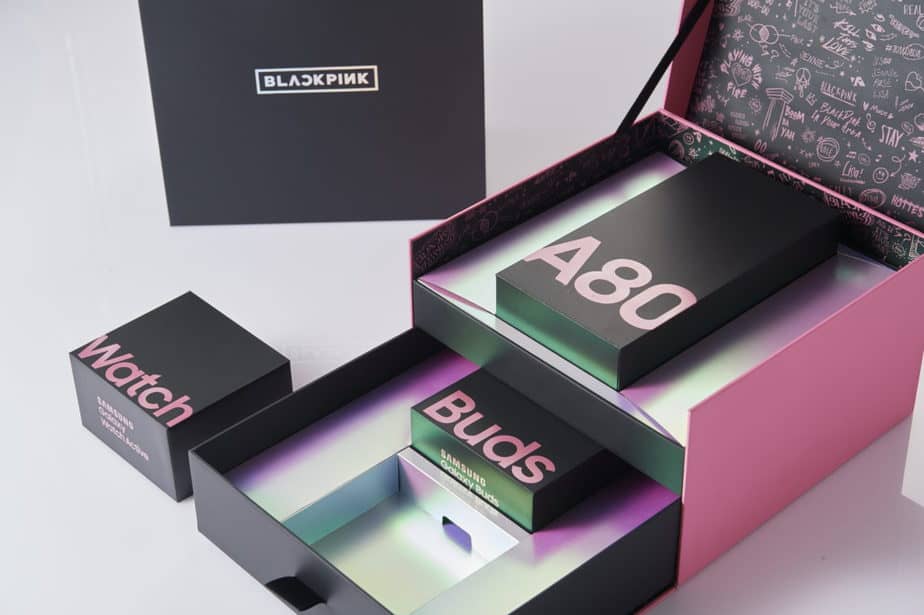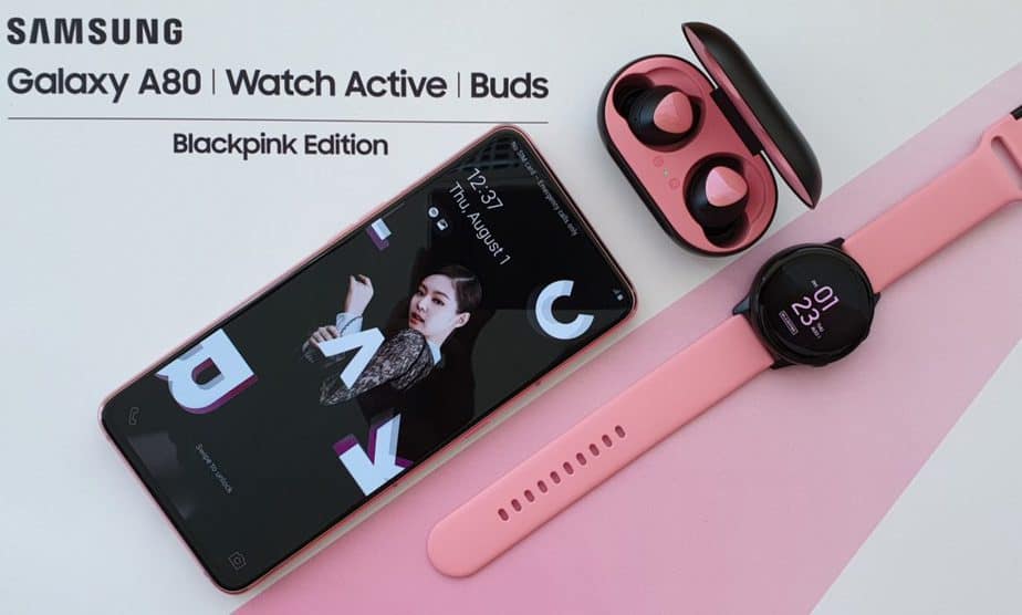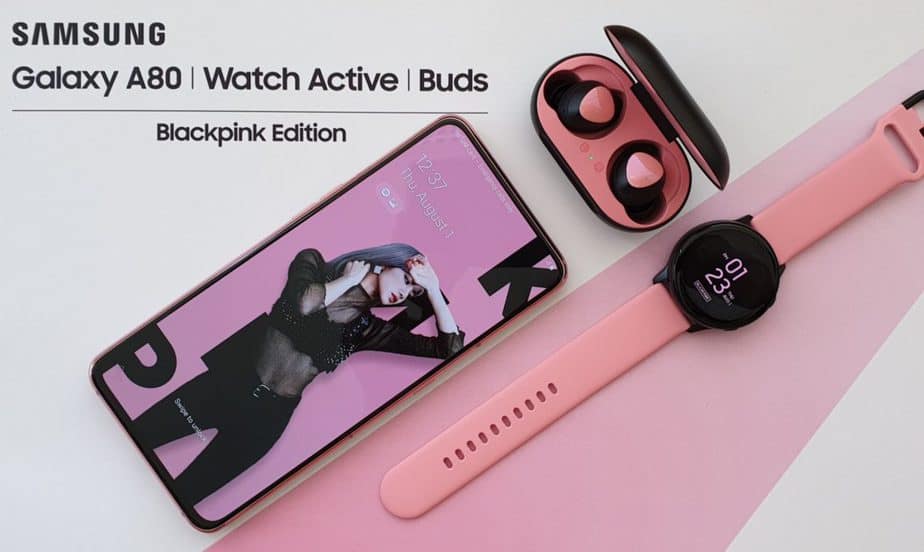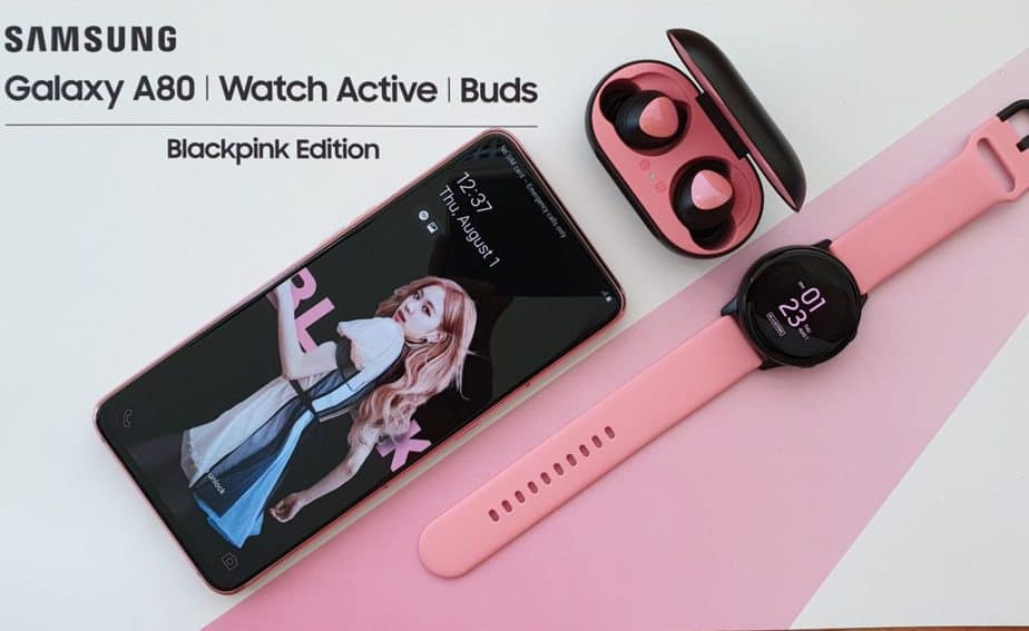 Harga Samsung Galaxy A80 edisi spesial Blackpink memang jauh lebih mahal dibanding versi standar. Akan tetapi, Samsung pun memberikan beberapa gadget tambahan, berupa 1 unit Galaxy Buds dan Galaxy Watch edisi Blackpink dalam paket pembeliannya.
