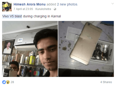 Dalam postingannya, Himesh mengatakan bahwa Vivo V5 miliknya meledak sesaat setelah ia melakukan pengisian baterai.