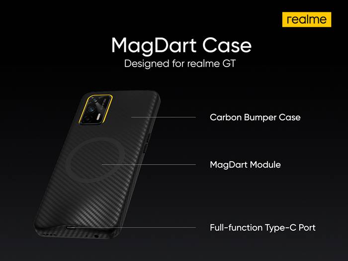 Terakhir, ada Realme GT MagDart Charging Case yang memungkinkan ponsel kompatibel dengan MagDart. Casing ini dapat terhubung melalui konektor Type-C dan memungkinkan smartphone terisi dayanya secara nirkabel lewat teknologi MagDart.